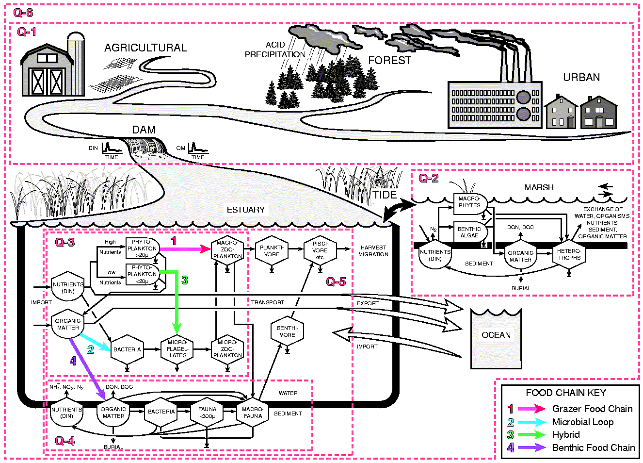 Research - We focus LTER research around five primary research questions. The scope of each question and the manner in which each fits in the overall program is illustrated with numbered boxes around portions of our conceptual model (Fig 7).